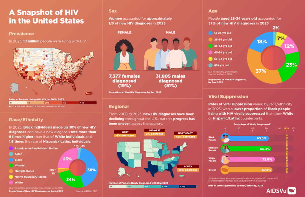 “Today’s data reveal both progress and persistent challenges,” said Dr. Patrick Sullivan, Professor of Epidemiology at Emory University’s Rollins School of Public Health and Principal Scientist for AIDSVu. “While HIV diagnoses have declined overall, the epidemic continues to disproportionately affect Black and Hispanic/Latino communities. To truly end HIV, we must dismantle systemic barriers, including preserving—and strengthening—federal funding for HIV prevention, treatment and care.”