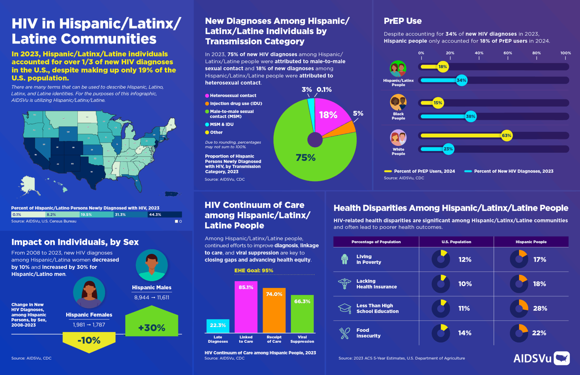 Hispanic/Latino men who have sex with men (MSM) represent the population most heavily affected by HIV within Hispanic/Latinx/Latine communities. In 2022, Hispanic/Latino MSM accounted for 37% of all new HIV diagnoses among men and now represent 39% of estimated new HIV infections among all MSM nationally.