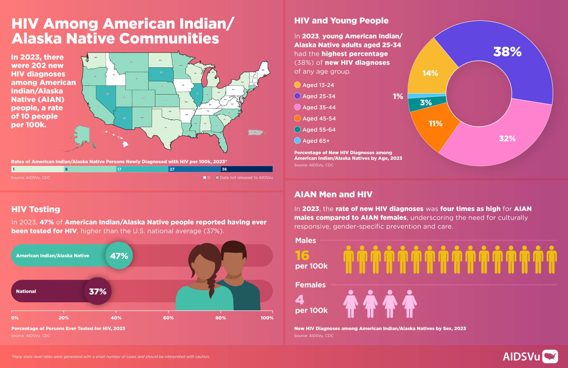 AIDSVu’s infographic encourages new ways of visualizing the HIV epidemic among Native communities. Share it on socials and add it to your presentations.