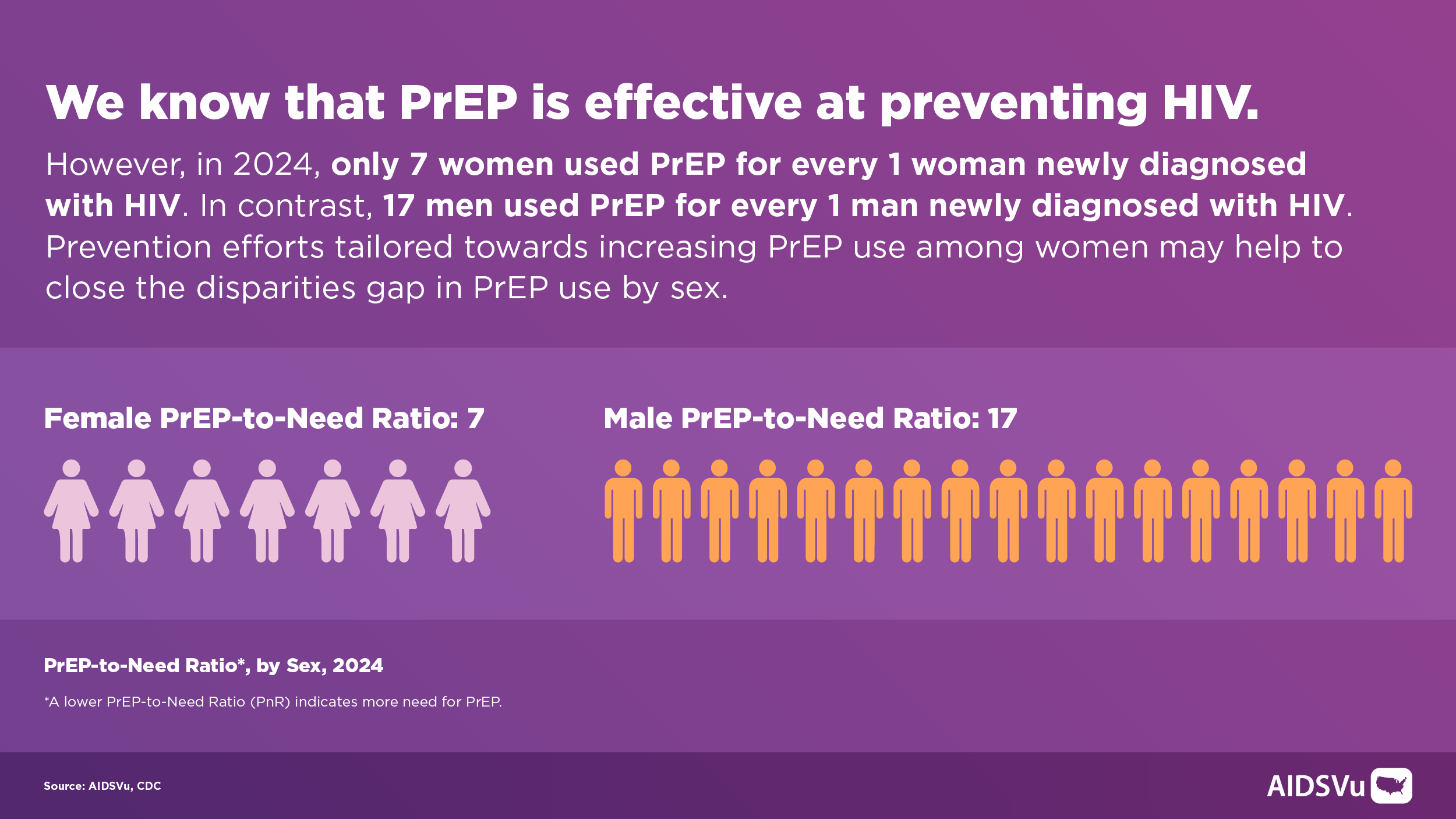 Despite women accounting for about 1/5 of new HIV diagnoses in 2023, women only comprised 9% of PrEP users in 2024, demonstrating a significant unmet need for PrEP. This NWGHAAD, we recognize the importance of connecting women to HIV prevention, testing, treatment, and care as we continue to make progress towards ending the HIV epidemic.