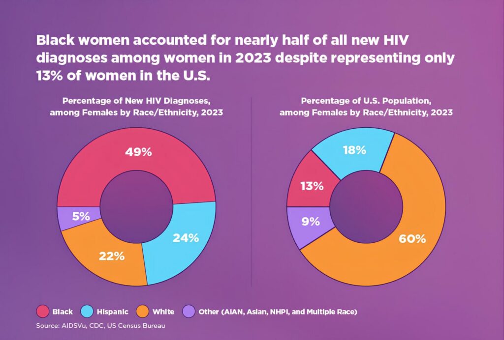 Black women represent nearly half of new HIV diagnoses among women but only 13% of the U.S. female population.