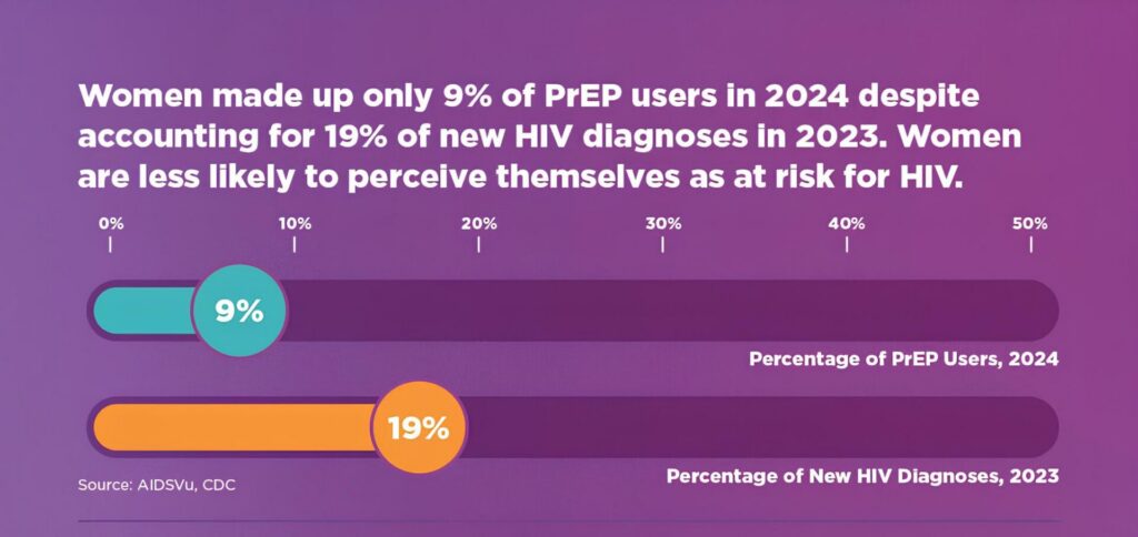 Women accounted for 19% of new HIV diagnoses in 2023 but only 9% of PrEP users in 2024, highlighting a persistent gap in HIV prevention.